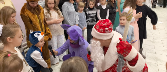 Перед началом новогоднего представления ребят ждала встреча со сказочными лесными героями, и, конечно же, с долгожданными Дедом Морозом и Снегурочкой. Особым сюрпризом стало появление Лунтика, который принес с собой атмосферу волшебства и радости. Юные гости активно участвовали в зажигательных играх, проявили свою смекалку и находчивость в интересных заданиях, подготовленных Дедушкой Морозом. Кульминацией праздника стала музыкальная сказка "Русалочка", которую с большим удовольствием приготовили воспитанники детской школы искусств города Починка под чутким руководством О.В. Литвин.